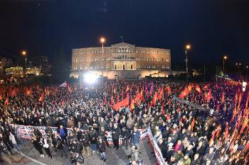 Ηχηρό μήνυμα έντασης της πάλης ενάντια στους ιμπεριαλιστικούς σχεδιασμούς και τους κινδύνους που απορρέουν απ' αυτούς για τον ελληνικό λαό και τους λαούς της ευρύτερης περιοχής, εξέπεμψε η χτεσινοβραδινή συγκέντρωση που διοργάνωσε η ΚΟ Αττικής του ΚΚΕ στην πλατεία Συντάγματος, απ' το βήμα της οποίας ο ΓΓ της ΚΕ, Δημήτρης Κουτσούμπας, παρουσίασε τις θέσεις του Κόμματος για τις εξελίξεις στα Βαλκάνια, τη Μέση Ανατολή, τις ελληνοτουρκικές σχέσεις και το Κυπριακό, μετά την κλιμάκωση της επιθετικότητας της Τουρκίας.