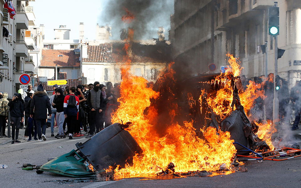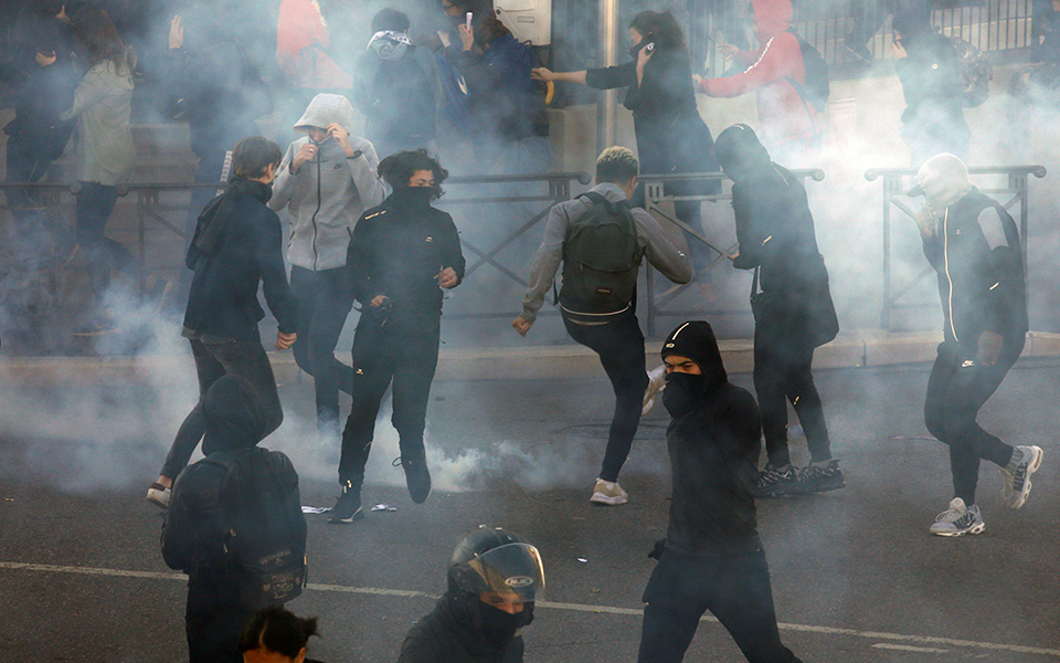 Επιπλέον ομάδα νεαρών πέταξαν πέτρες και βόμβες μολότοφ στις αστυνομικές δυνάμεις κι αυτές απάντησαν με περιορισμένη χρήση χημικών.