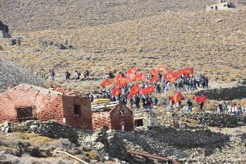 «Να, σε λίγο θα δεις πού ήταν οι σκηνές μας. Ολη η πλαγιά ήταν γεμάτη σκηνές!» Λέει συγκινημένος ένας σύντροφος που ήταν εξόριστος κατά τη διάρκεια της επταετίας.