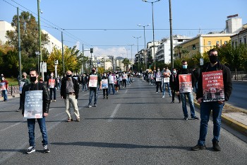 Ξεδιπλώνοντας γρήγορα τα πανό και τις σημαίες, φορώντας τις μάσκες τους και κρατώντας τις αποστάσεις, δεκάδες διαδηλωτές απλώθηκαν κατά μήκος της Β. Σοφίας, με μέτωπο στις κλούβες των ΜΑΤ, που είχαν κλείσει από νωρίς κάθετα το δρόμο.