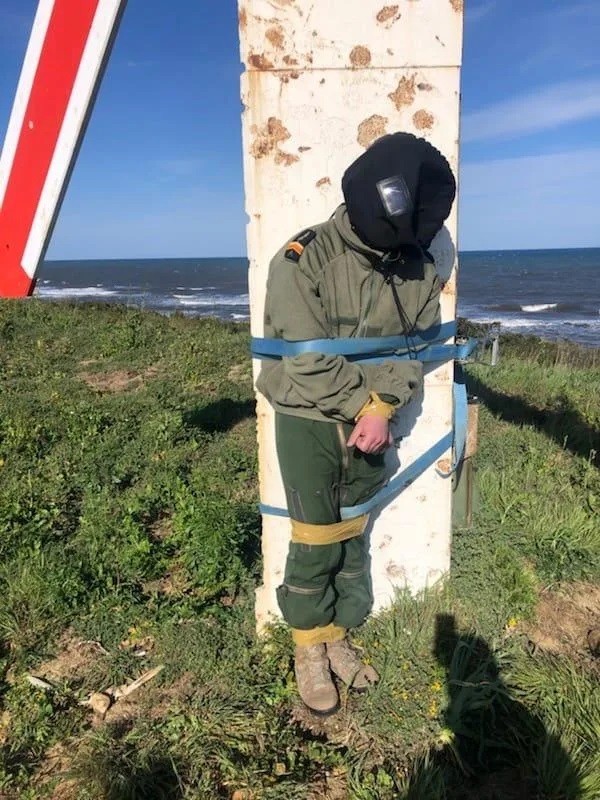 Μετά από περίπου 20 λεπτά τον έλυσαν από τον στόχο και τον υποχρέωσαν να πάει προς το όχημα που τον είχε μεταφέρει στο πεδίο βολής με πηδηματάκια, καθώς τα πόδια του παρέμειναν δεμένα, ενώ το όλο περιστατικό βιντεοσκοπήθηκε και διαμοιράστηκε μέσω WhatsApp.